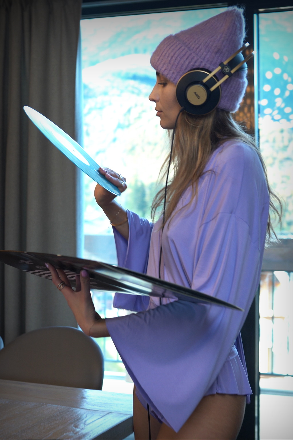 Modelka na fotkách nosí veľkosť S, jej výška je 176 cm, boky 93 cm, pás 63 cm, prsia 87 cm.