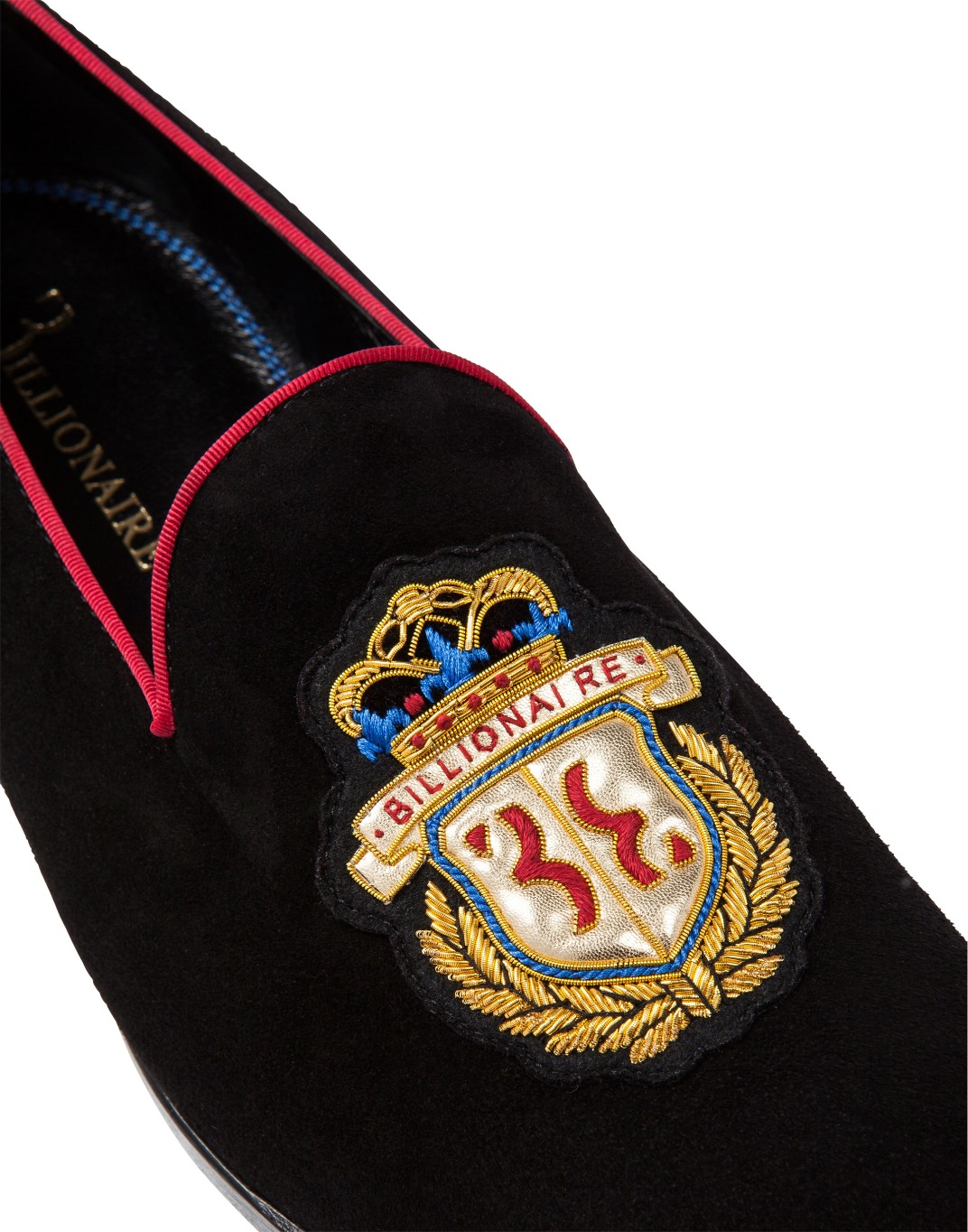 BILLIONAIRE Loafers Jake - pánske mokasíny Vrchný materiál: 100% koža Vnútorný materiál: 100% koža Podrážka: 100% koža Farba: čierna, zlatá Detaily: červené lemovanie, zlatá aplikácia Model: B18SMSBO115BLE043N Made In Italy
