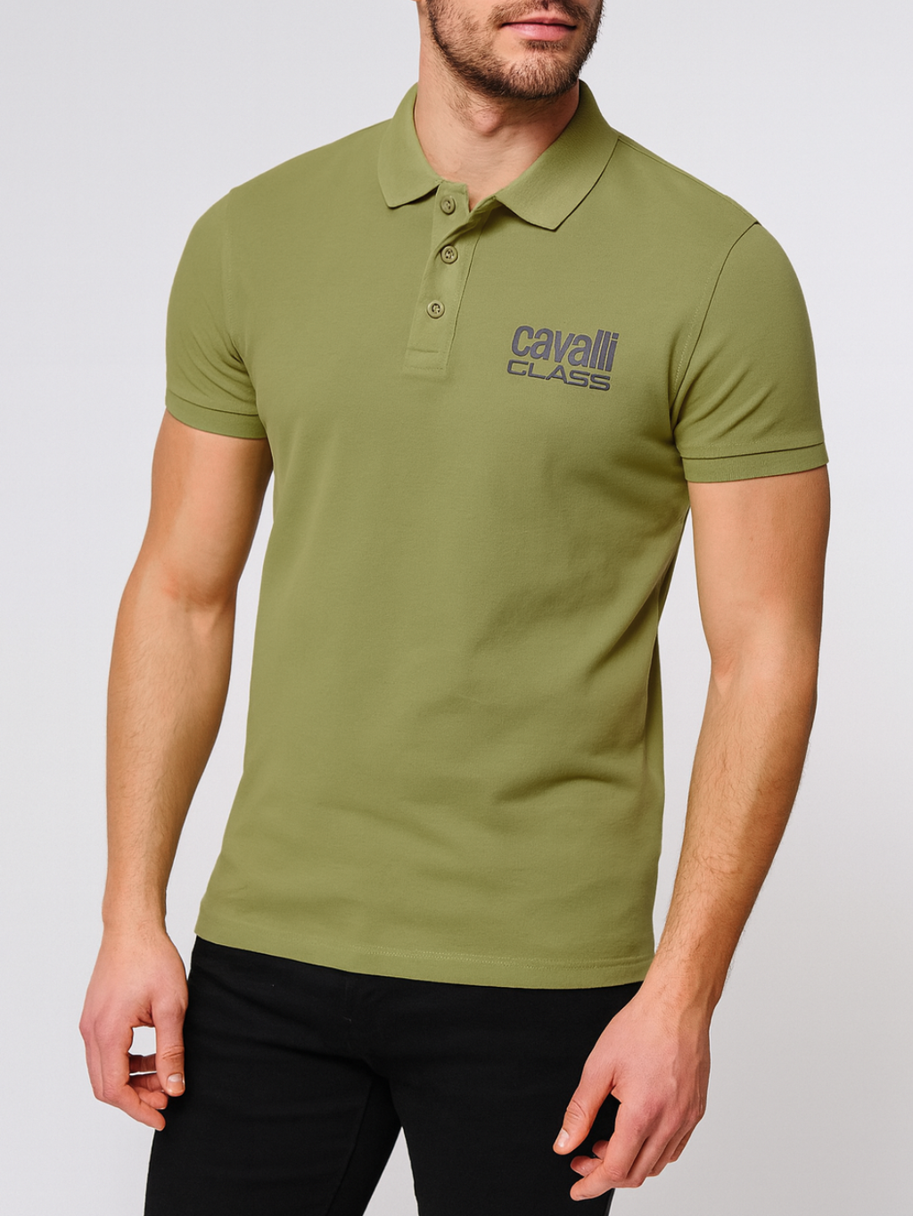 Cavalli Class Carlo - pánske polo tričko Materiál: 100% bavlna Farba: zelená, čierna Strih: regular fit Vzor: jednofarebný, so vzorom Detail: logo značky Model: QXT64Z
