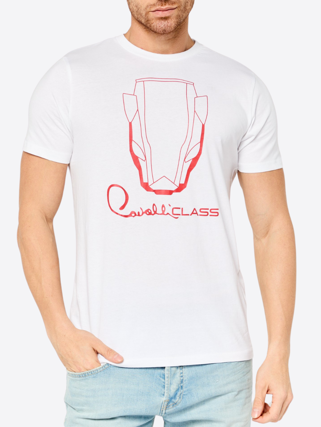 Cavalli Class Panther - pánske tričko Materiál: 100% bavlna Farba: biela, červená Strih: regular fit Vzor: so vzorom Detail: logo značky Model: RXT60D Model meria 188 cm a má na sebe veľkosť M