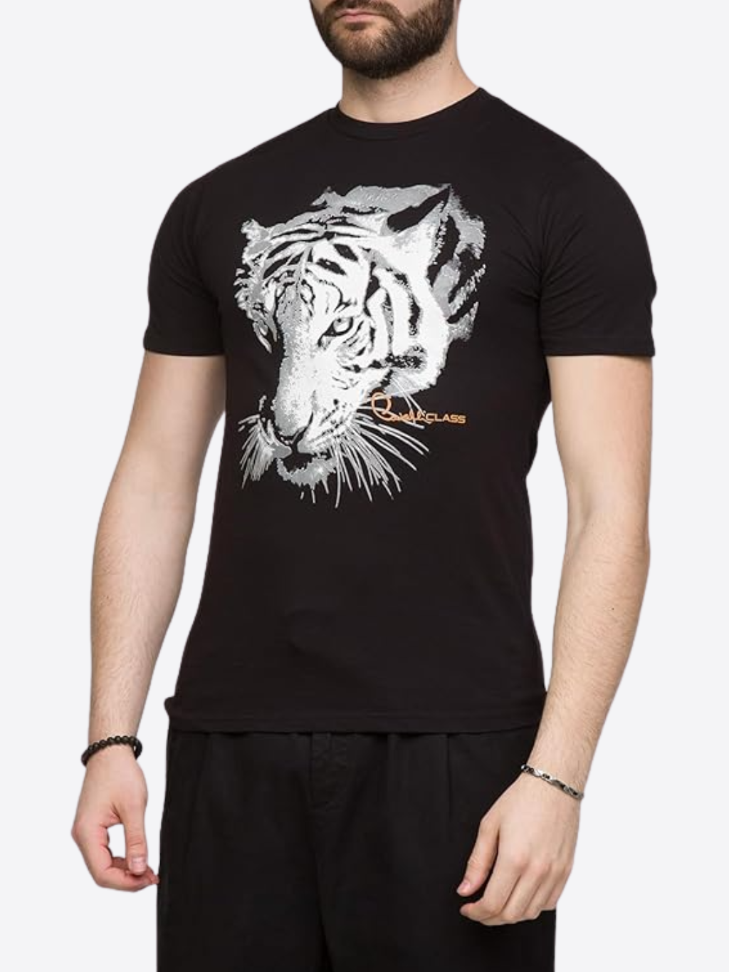 Cavalli Class Tiger - pánske tričko Materiál: 100% bavlna Farba: čierna, biela Strih: regular fit Vzor: so vzorom Detail: logo značky Model: RXT60J