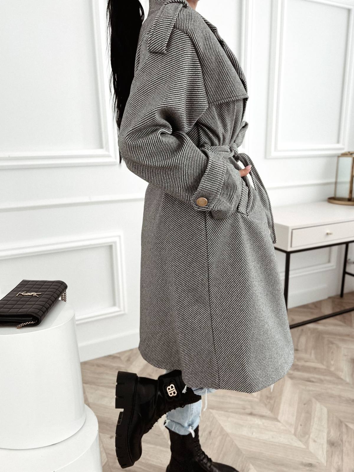 Elegantný kabát s jemným rebrovaním, ktorý vynikne svojím jednoduchým a nadčasovým strihom.Má klasický strih s opaskom, ktorý pekne zvýrazní pás, a praktické vrecká pre ešte väčšie pohodlie. Kabát Fedra je z príjemného materiálu s podšívkou, ktorý sa skvele nosí a zahreje aj počas chladnejších dní. Vďaka univerzálnemu dizajnu ho ľahko doladíte k obľúbeným kúskom z vášho šatníka – či už k džínsom, sukni alebo šatám.