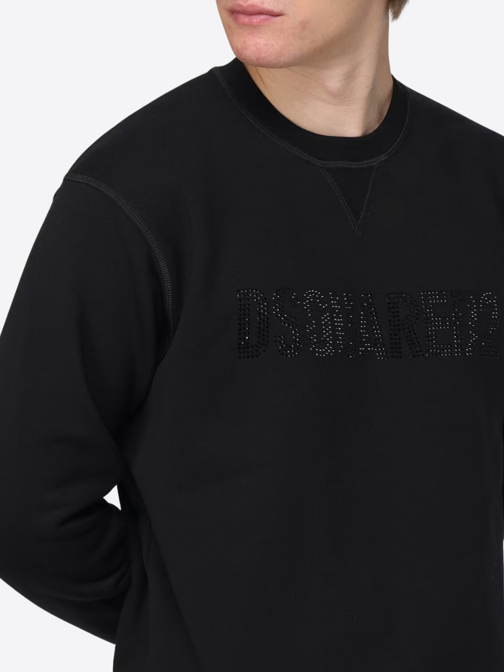 Dsquared2 Glowing Logo - pánska mikina Materiál: 100% bavlna Farba: čierna Typ: bez kapucne Vzor: so vzorom, jednofarebný Zapínanie: bez zapínania Detail: logo značky Model: S74GU0836 Made in Italy