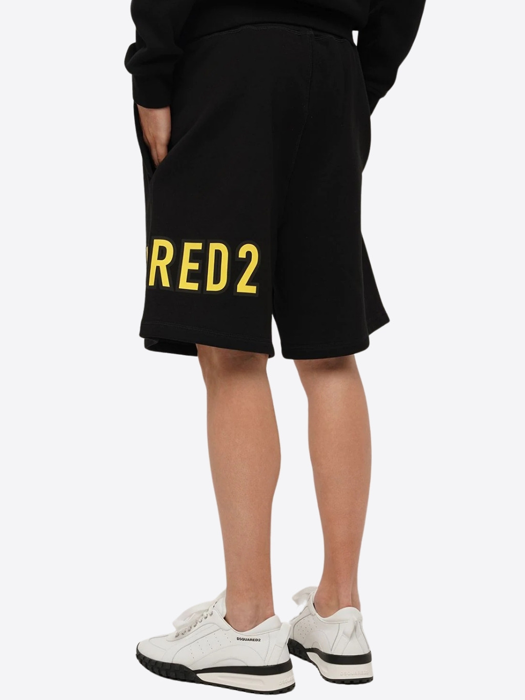 Dsquared2 Logo - pánske kraťasy Materiál: 100% bavlna Farba: čierna, žltá Strih: regular fit Vzor: so vzorom Vrecká: bočné vrecká Detail: logo značky Model: S74MU0708 Made in Italy