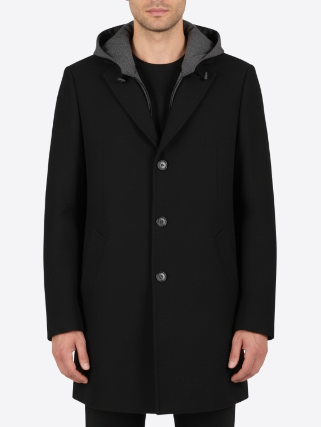 Gaudi Hooded - pánsky kabát Materiál 1: 65% polyester, 25% viskóza, 10% akryl Materiál 2: 65% polyester, 35% viskóza Materiál 3: 100% polyester Farba: čierna, sivá Strih: regular fit Zapínanie: na gombíky Vzor: jednofarebný Detail: logo značky Model: 321GU35044