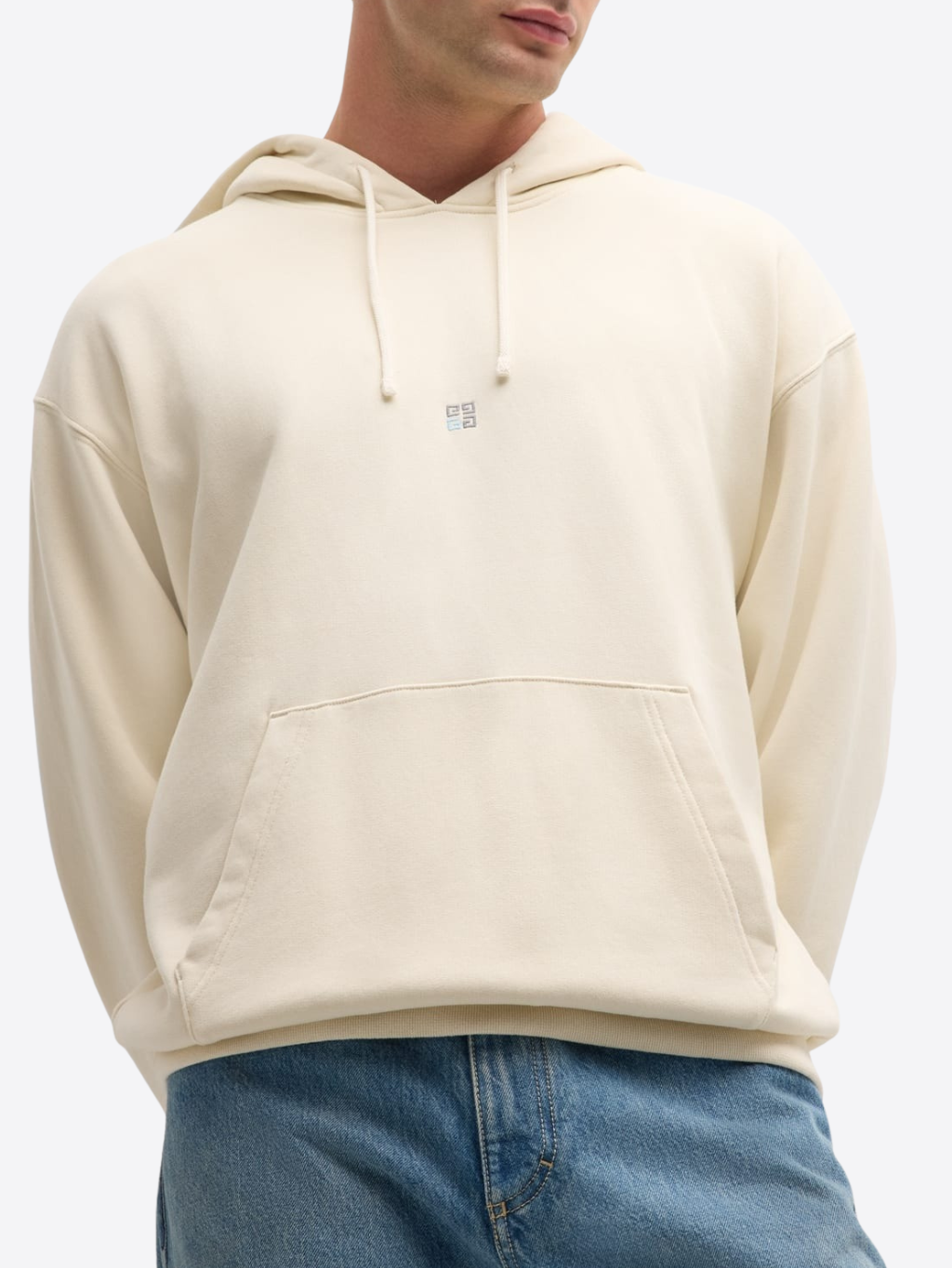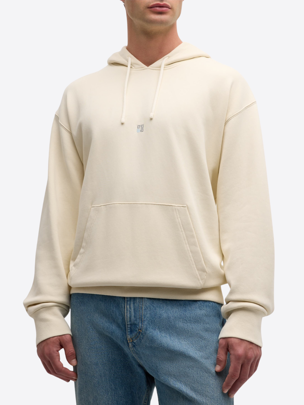 Givenchy 4G Logo - pánska mikina Materiál: 100% bavlna Farba: slonovinová Typ: s kapucňou Vzor: jednofarebný Zapínanie: bez zapínania Detail: logo značky Model: BMJ0LA3YMX Made in Portugal