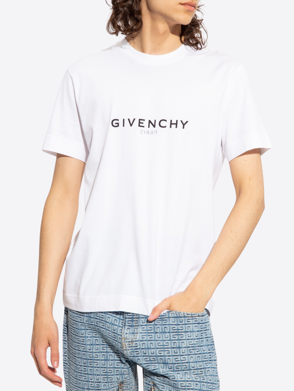 Givenchy Reverse - pánske tričko Materiál: 100% bavlna Farba: biela, čierna Strih: slim fit Vzor: so vzorom Detail: logo značky Model: BM71653Y6B Made in Portugal