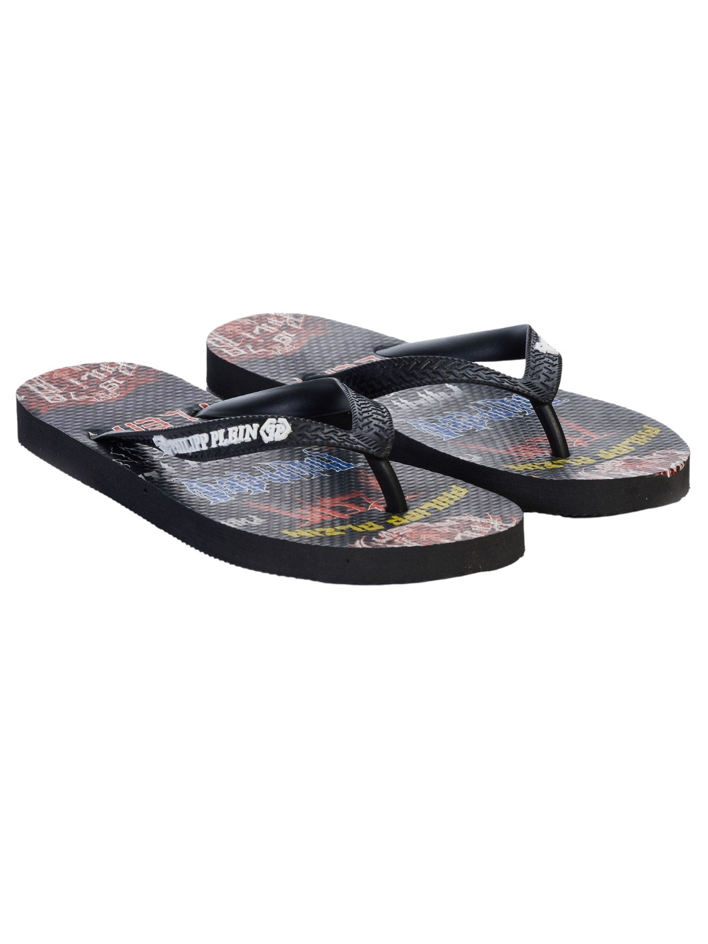Philipp Plein Storm - žabky Zvršok: syntetika Podšívka: syntetika Stielka: syntetika Podrážka: syntetika Farba: čierna, viacfarebná Detail: logo značky Model: IMPS901