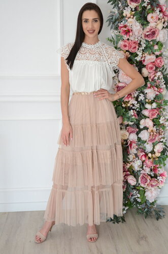 PLANETA-MODY Béžová tylová maxisukňa Cloudie, Veľkosť UNI (vhodné pre S, M, L)