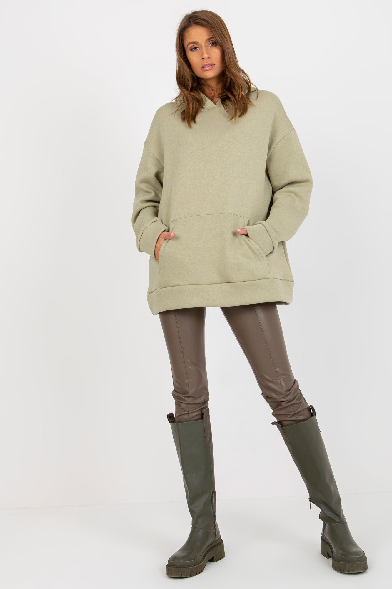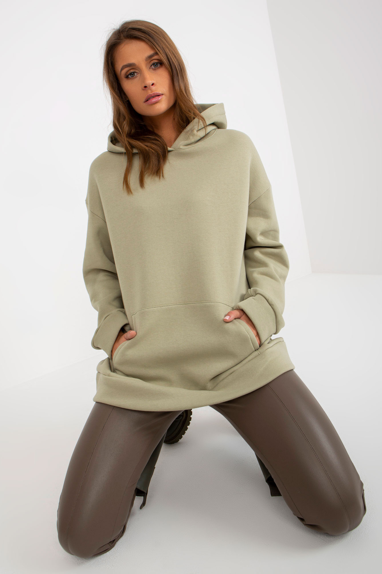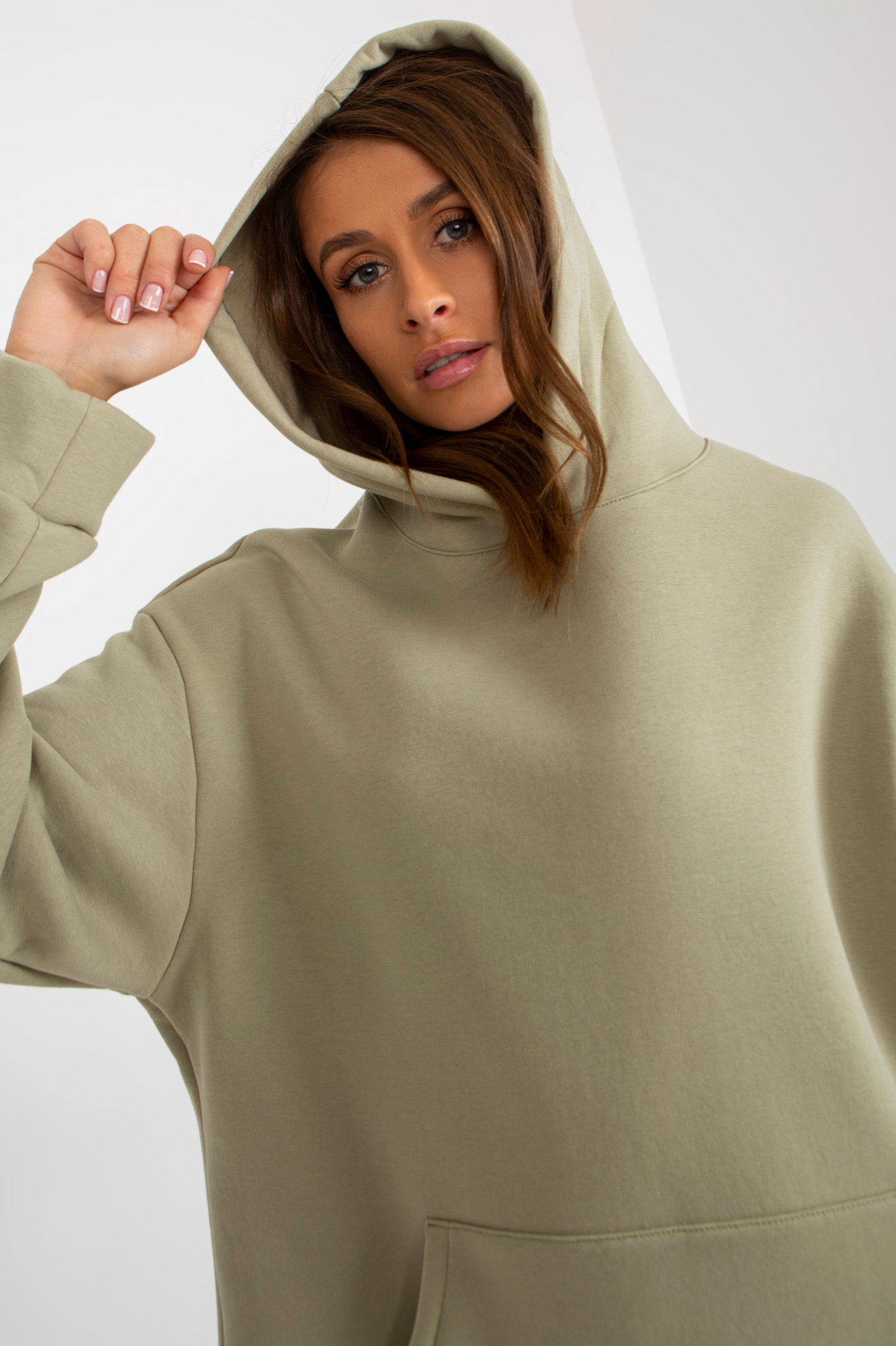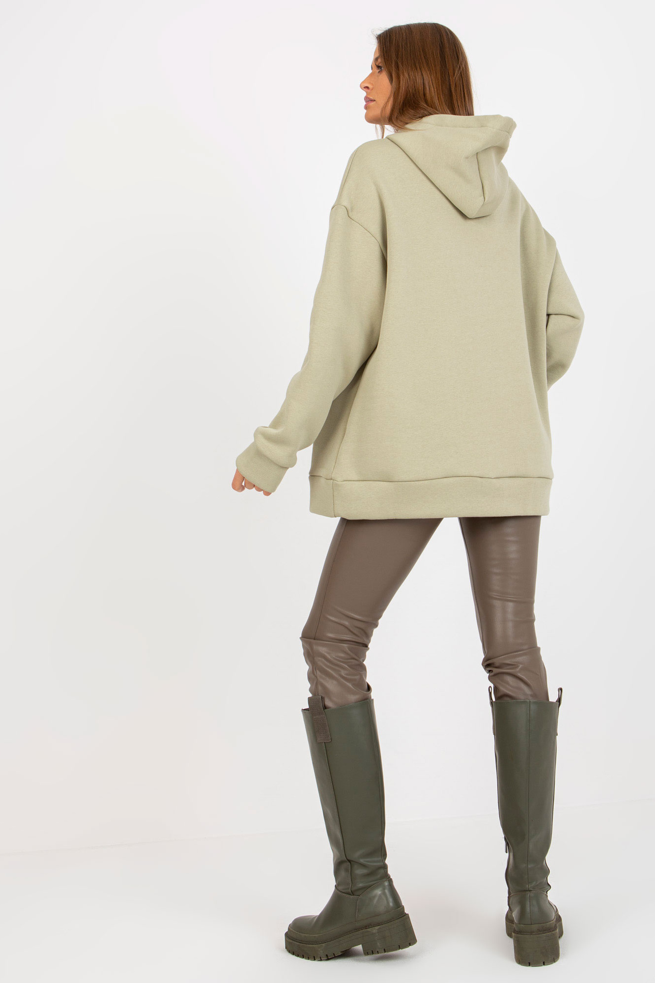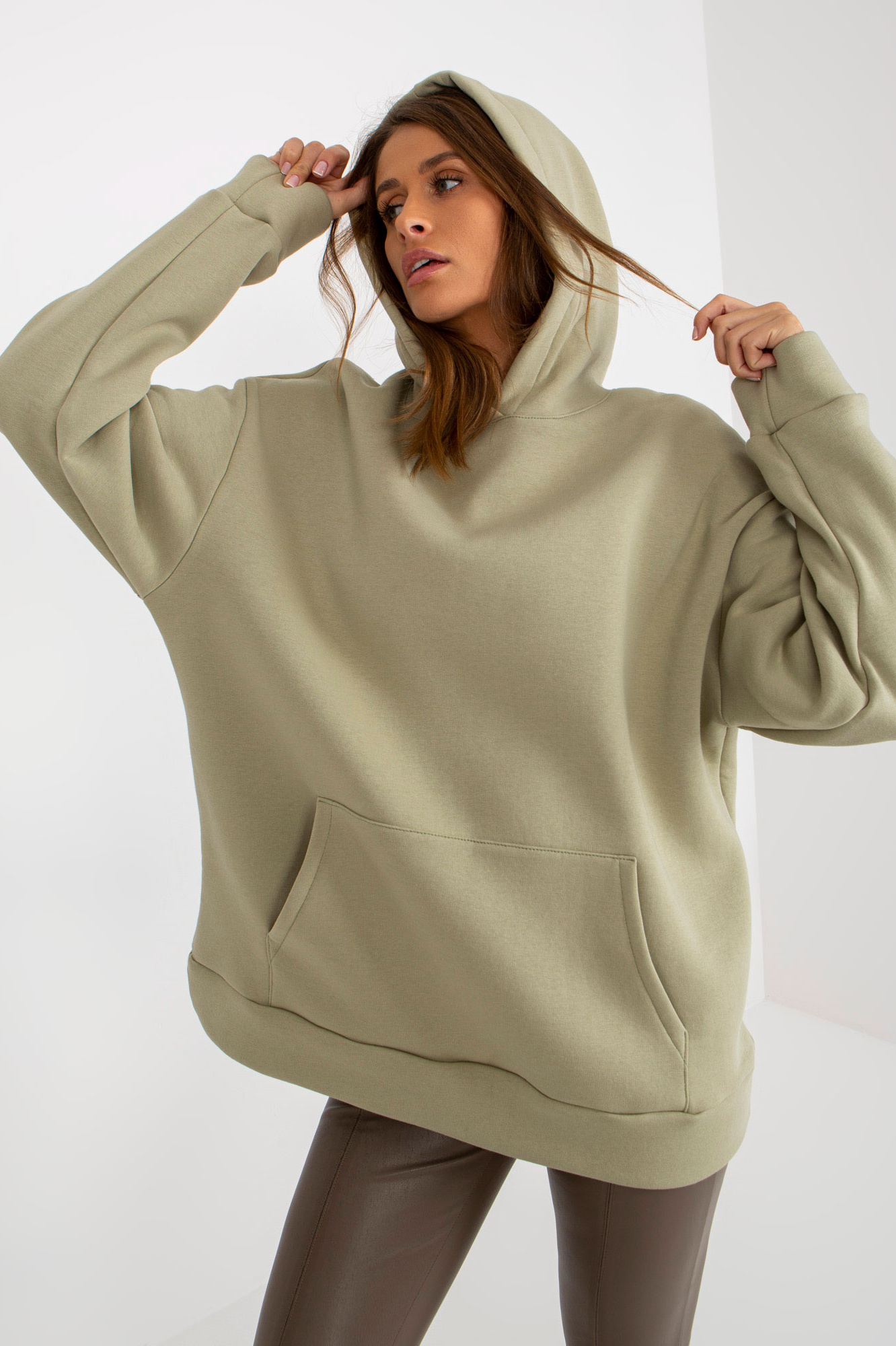 Trendová dámska oversize mikina v bledozelenej farbe. Mikina je doplnená kapucňou a veľkým vreckom na prednej strane.