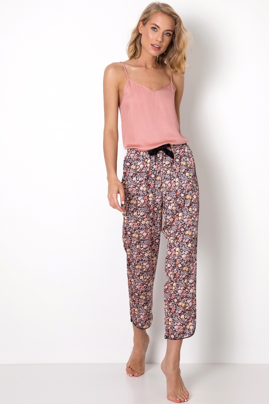 Štýlové dámske pyžamo Caroline z príjemného materiálu. Top s tenkými nastaviteľnými ramienkami v staroružovej farbe doplnený klasickými nohavicami. Nohavice sú s výrazným vzorom a pekne ozvláštnia jednoduchý top.
