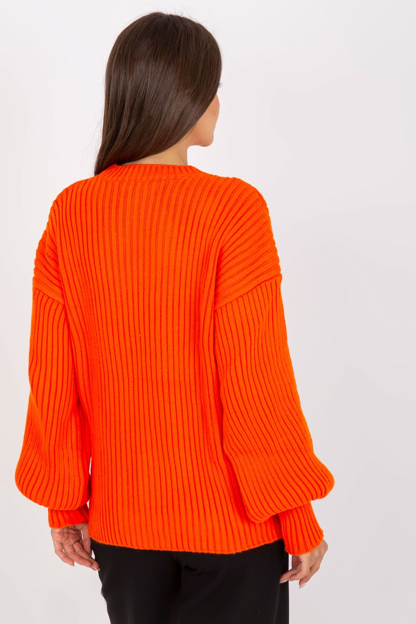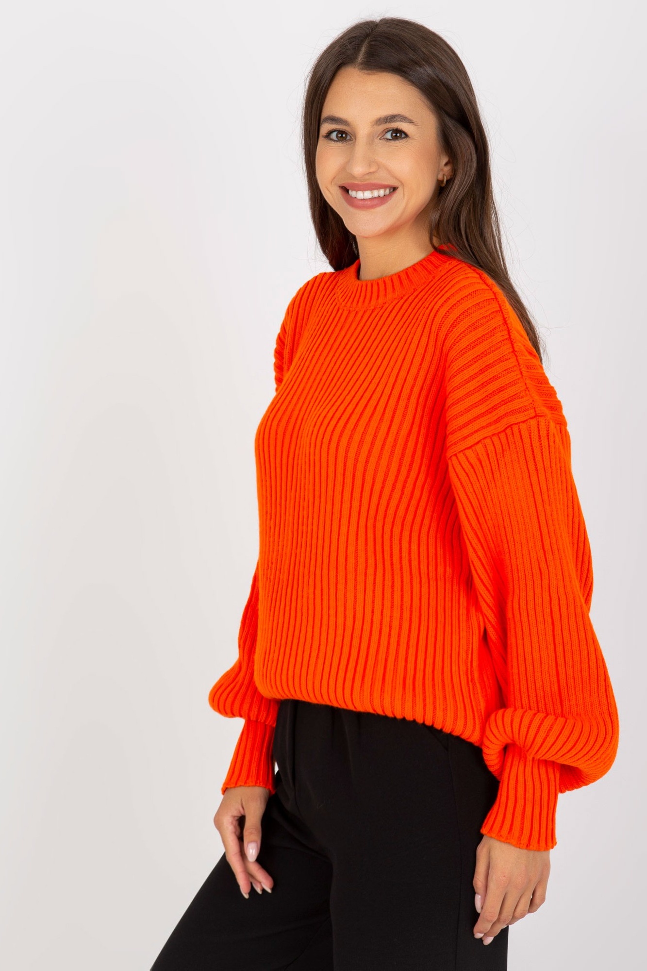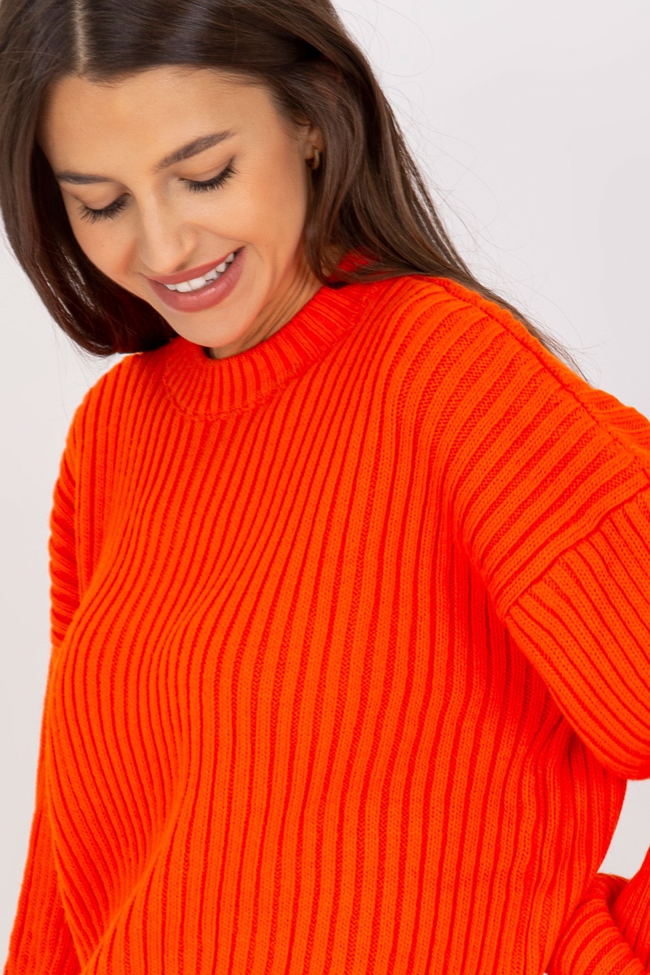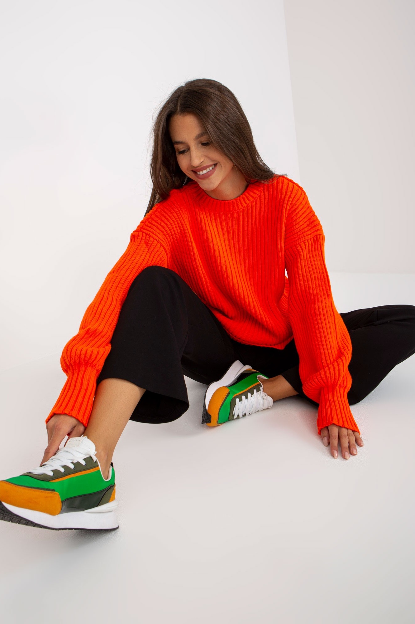 Teplý a veľmi príjemný pulóver v oversize strihu, so širokým rukávom. Pulóver v oranžovej farbe vhodný na bežné nosenie.