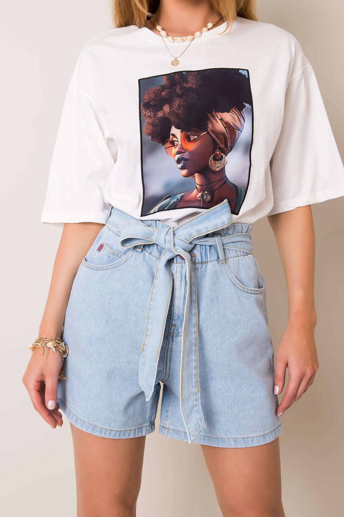 Štýlové riflové kraťasy v svetlomodrej farbe s viazaním v páse. Kraťasy majú zapínanie na zips a gombík. Veľ. S, M skladom, doba dodania 1-2 dni.