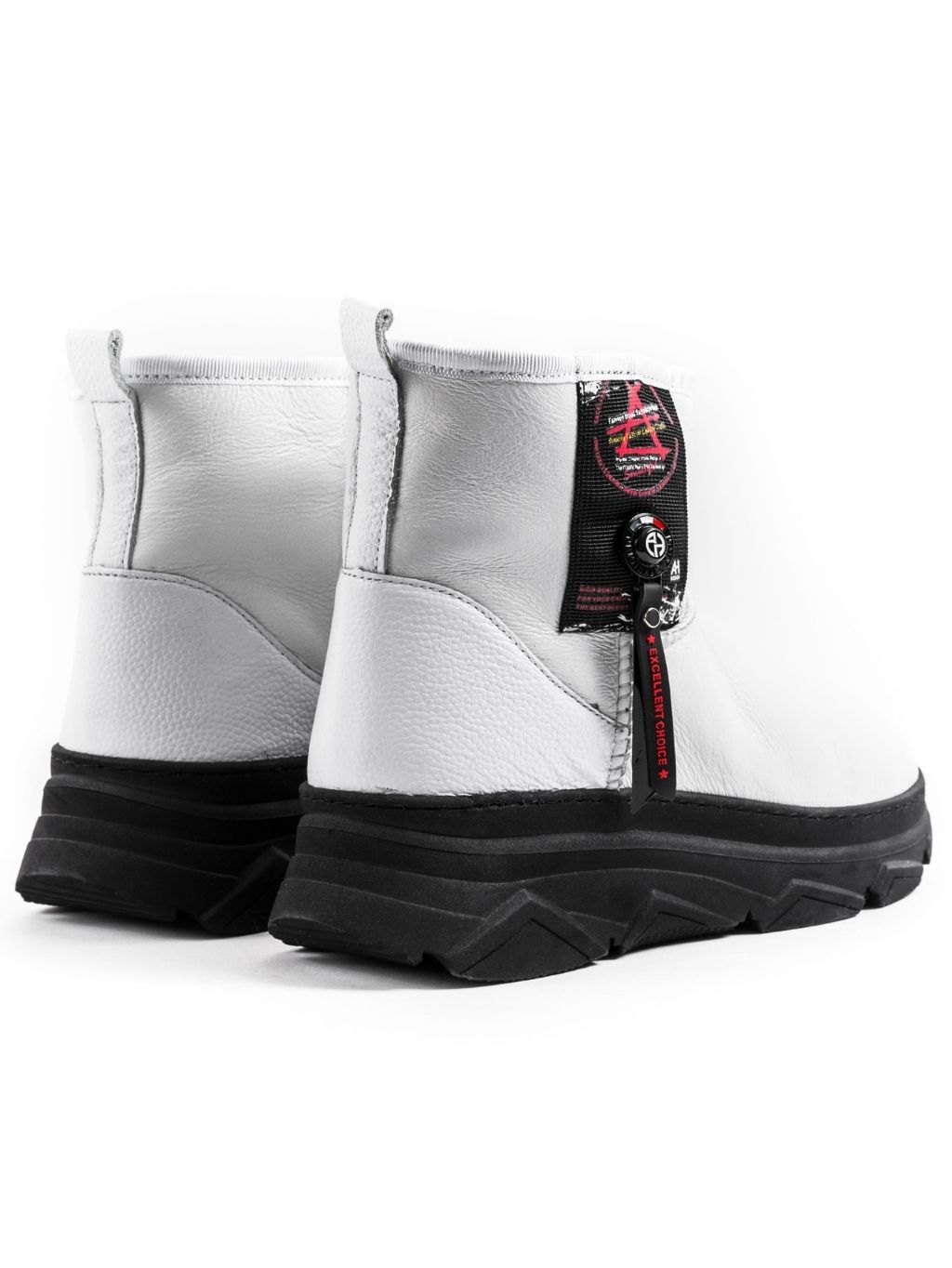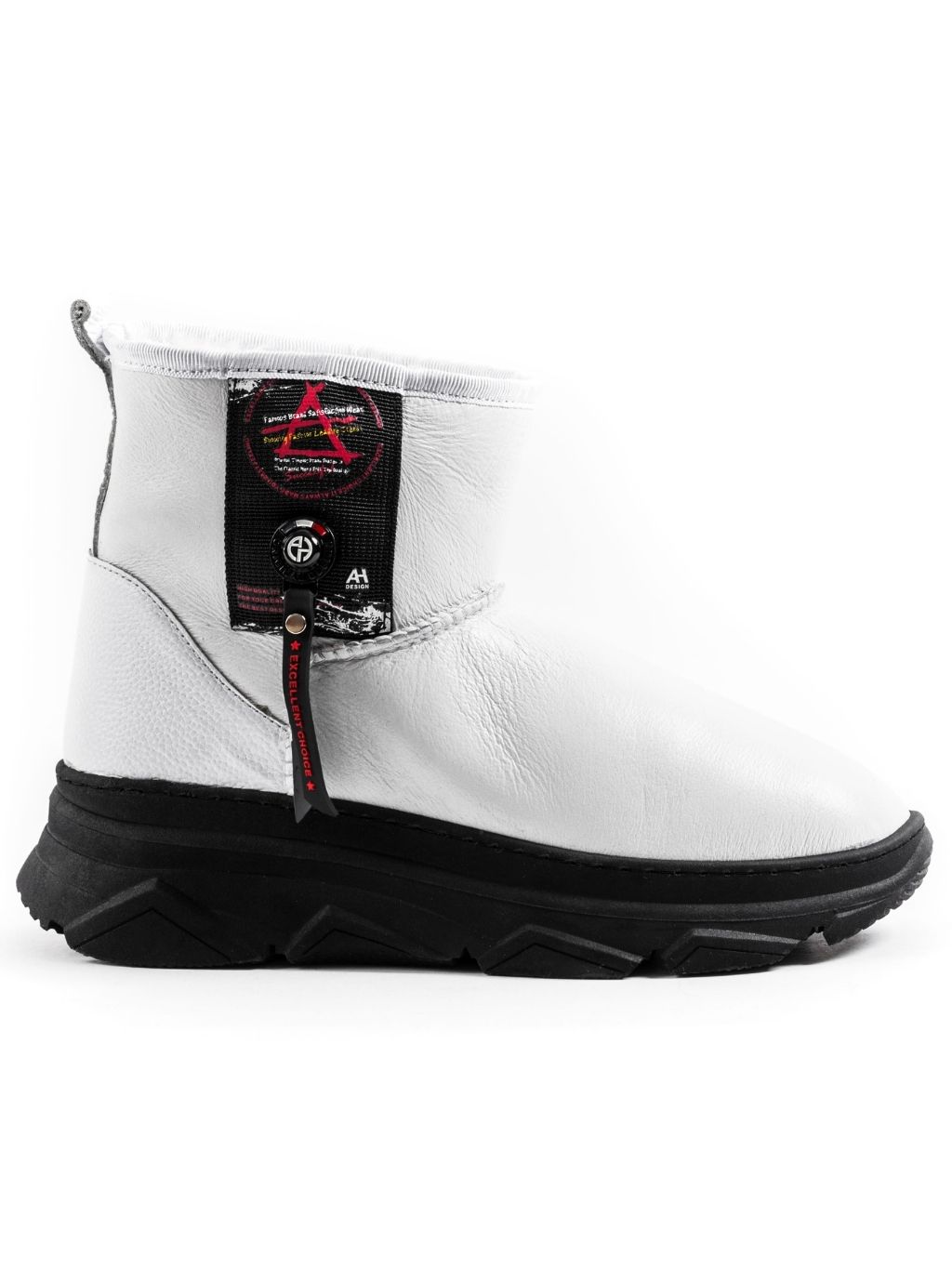 Roberto Serpentini Bianco – dámske snehule Zvršok: 100% koža Podšívka: 100% ovčia vlna Stielka: 100% ovčia vlna Podrážka: syntetika Výplň: ovčia vlna Zapínanie: bez zapínania Farba: čierna, biela Detail: doplnky čiernej farby Model: 19468 Made In Italy