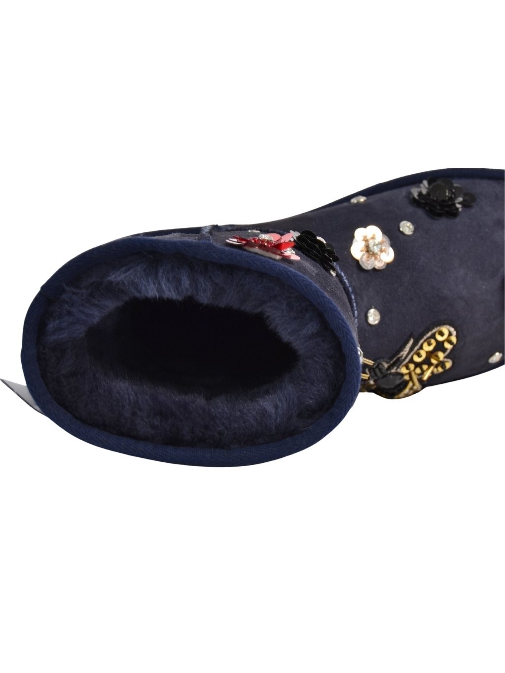 Roberto Serpentini Blu - dámske snehule Vrchný materiál: 100% koža Vnútorný materiál: 100% vlna Podrážka: syntetika Farba: modrá Detaily: farebné kamienky rôznych tvarov Model: 1487 Made In Italy