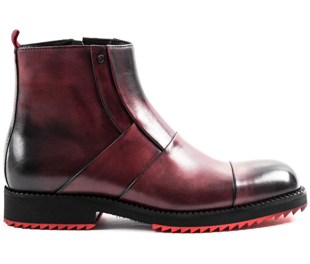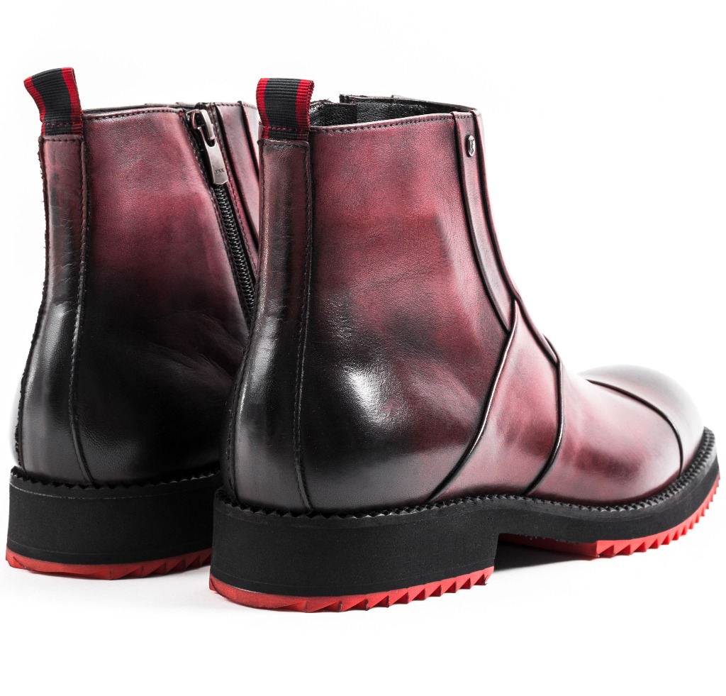 Roberto Serpentini Bordeaux – pánske členkové čižmy Zvršok: 100% koža Podšívka: 100% koža Stielka: 100% koža Podrážka: syntetika Zapínanie: na zips Farba: bordová, čierna Detail: doplnky striebornej farby Model: 59405 Made In Italy