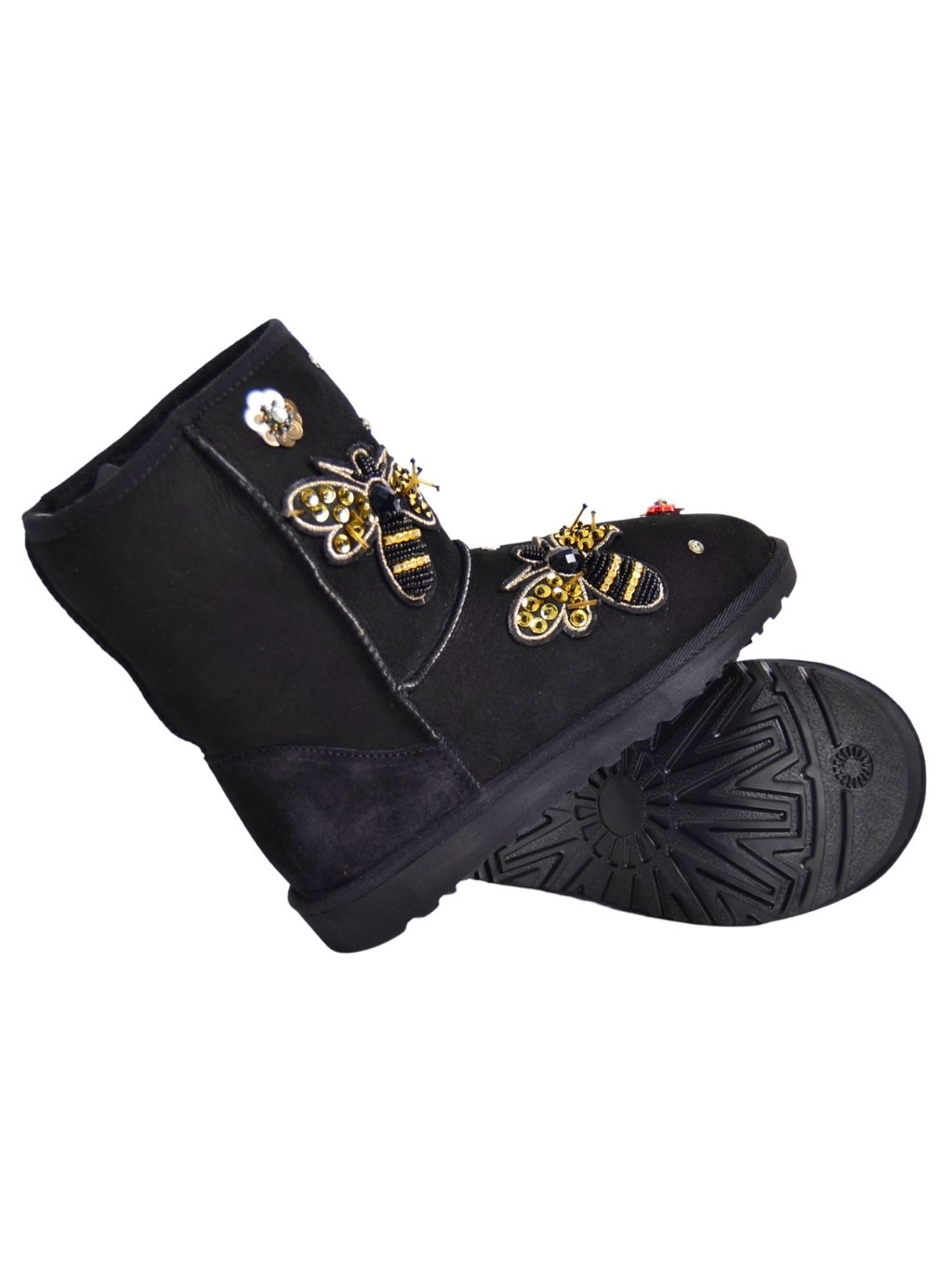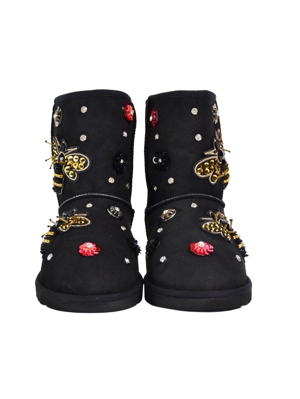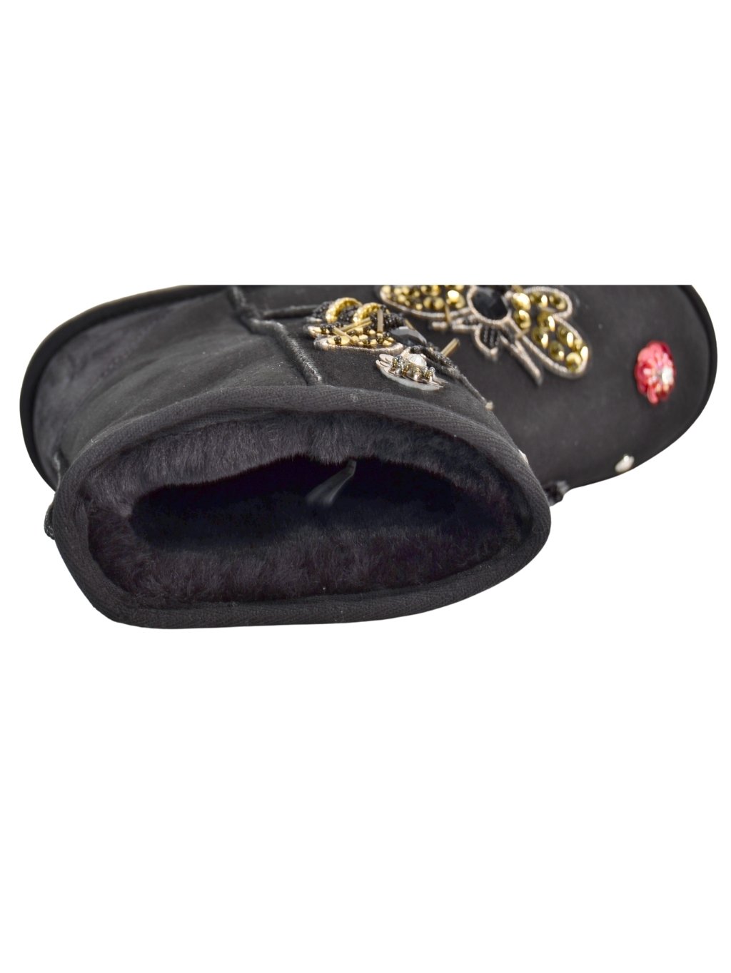 Roberto Serpentini Nero - dámske snehule Vrchný materiál: 100% koža Vnútorný materiál: 100% vlna Podrážka: syntetika Farba: čierna Detaily: farebné kamienky rôznych tvarov Model: 1487 Made In Italy