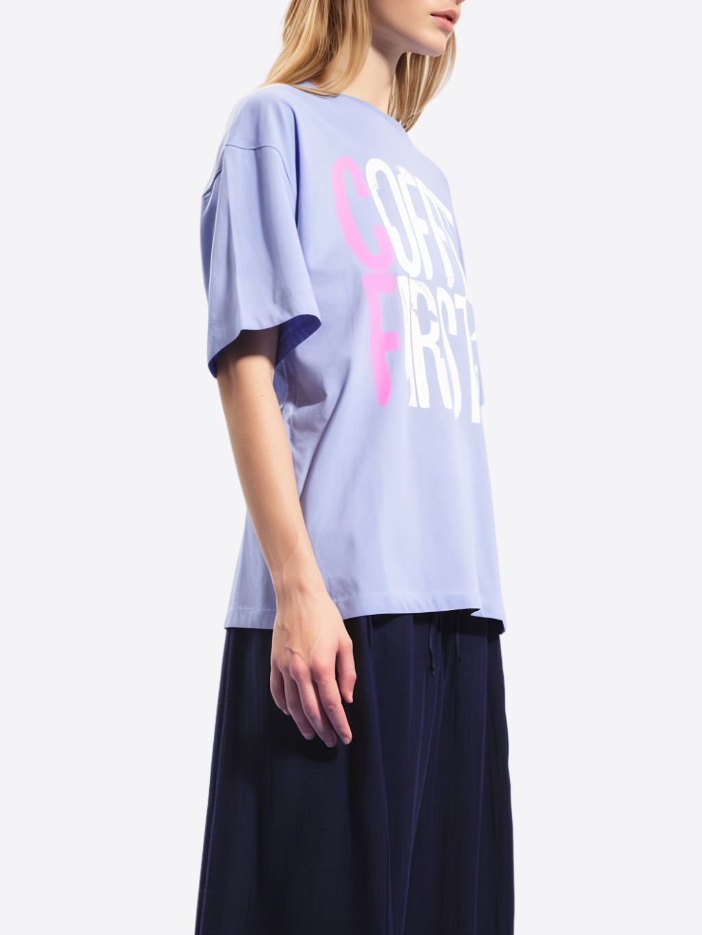 #VDR Coffee - dámske oversize tričko Materiál: 100% bavlna Farba: fialová, biela, ružová Strih: oversize Vzor: so vzorom Detail: logo značky Model: 17319