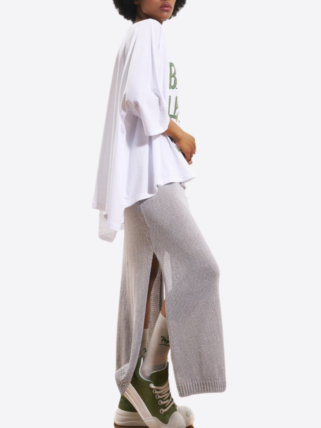 #VDR Knit - dámska sukňa Materiál: 50% bavlna, 50% akryl Farba: sivá Strih: puzdrový Zapínanie: elastický pás Dĺžka: midi Vzor: jednofarebný Model: 17176