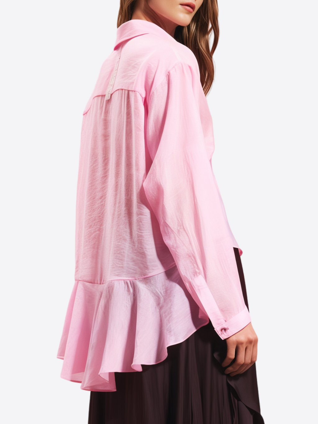 #VDR Light - dámska košeľa Materiál: 78% viskóza, 22% polyester Farba: ružová Strih: loose fit Vzor: jednofarebný Detail: logo značky Dĺžka rukávu: dlhé rukávy Model: 17304