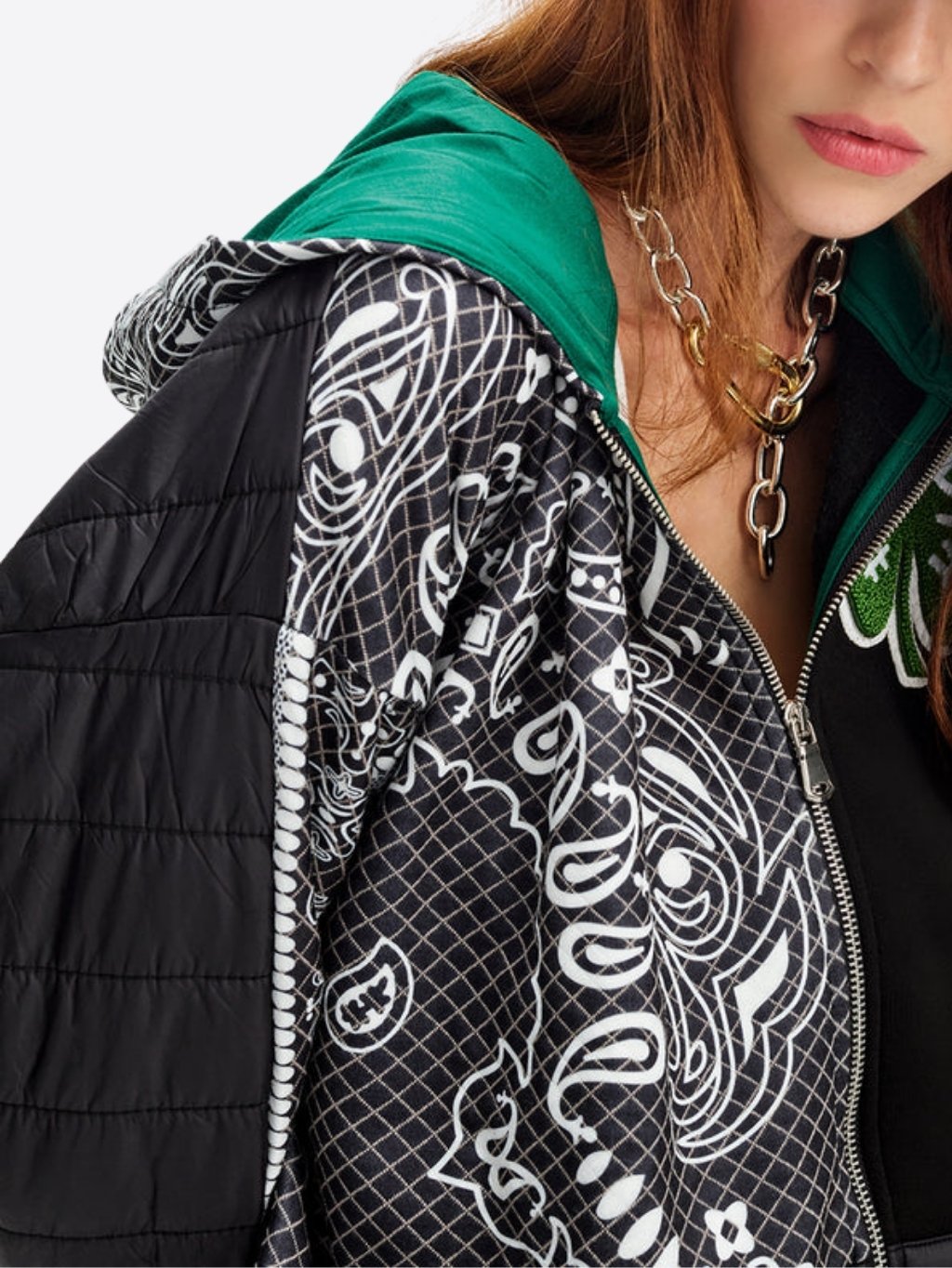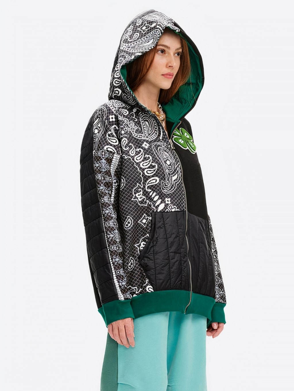 #VDR Luck - dámska oversize mikina Materiál 1: 50% bavlna, 50% polyester Materiál 2: 80% bavlna, 20% polyester Farba: čierna, zelená, viacfarebná Strih: oversize Typ: s kapucňou Zapínanie: na zips Vzor: so vzorom Detail: logo značky Model: 10380