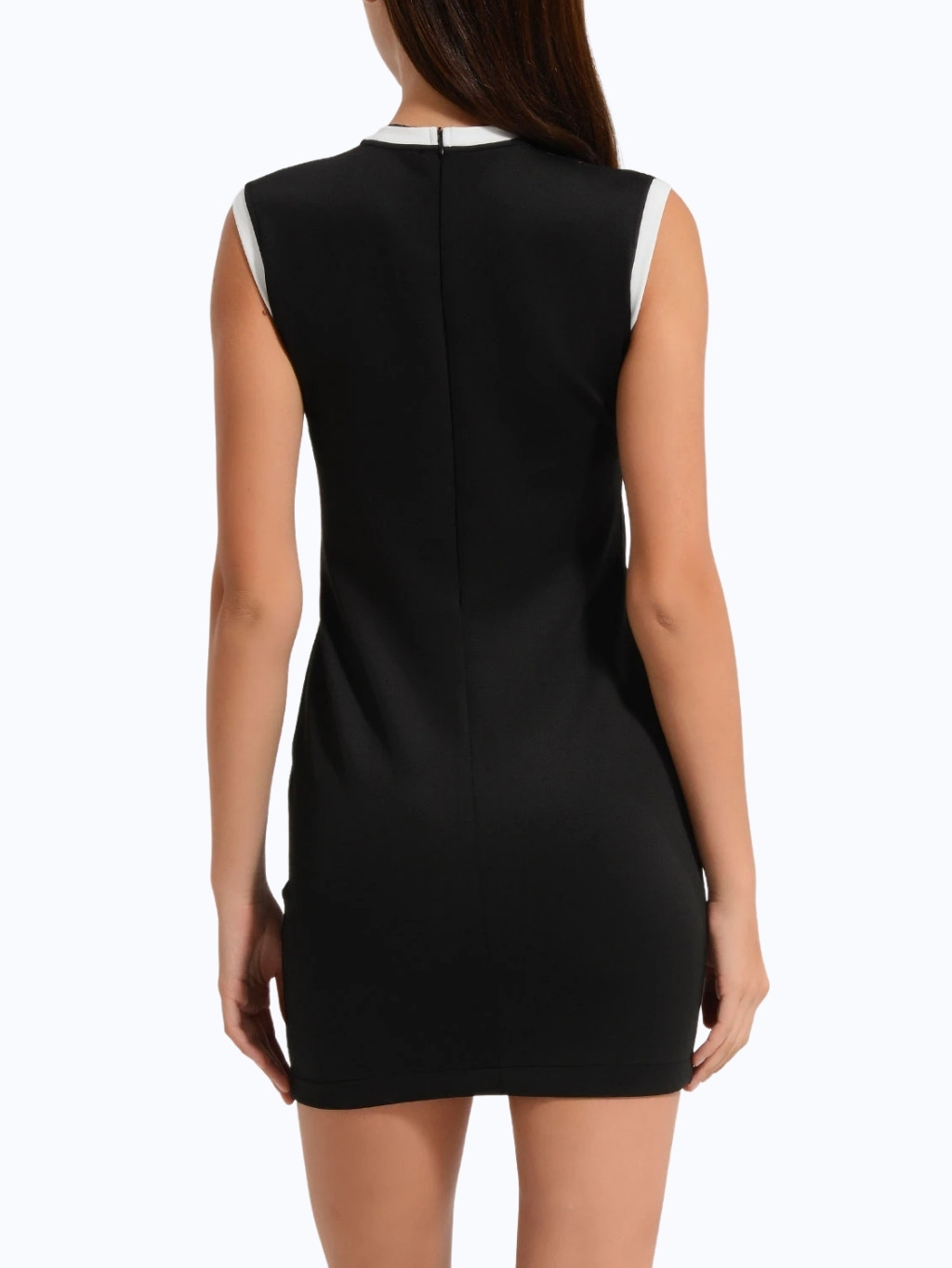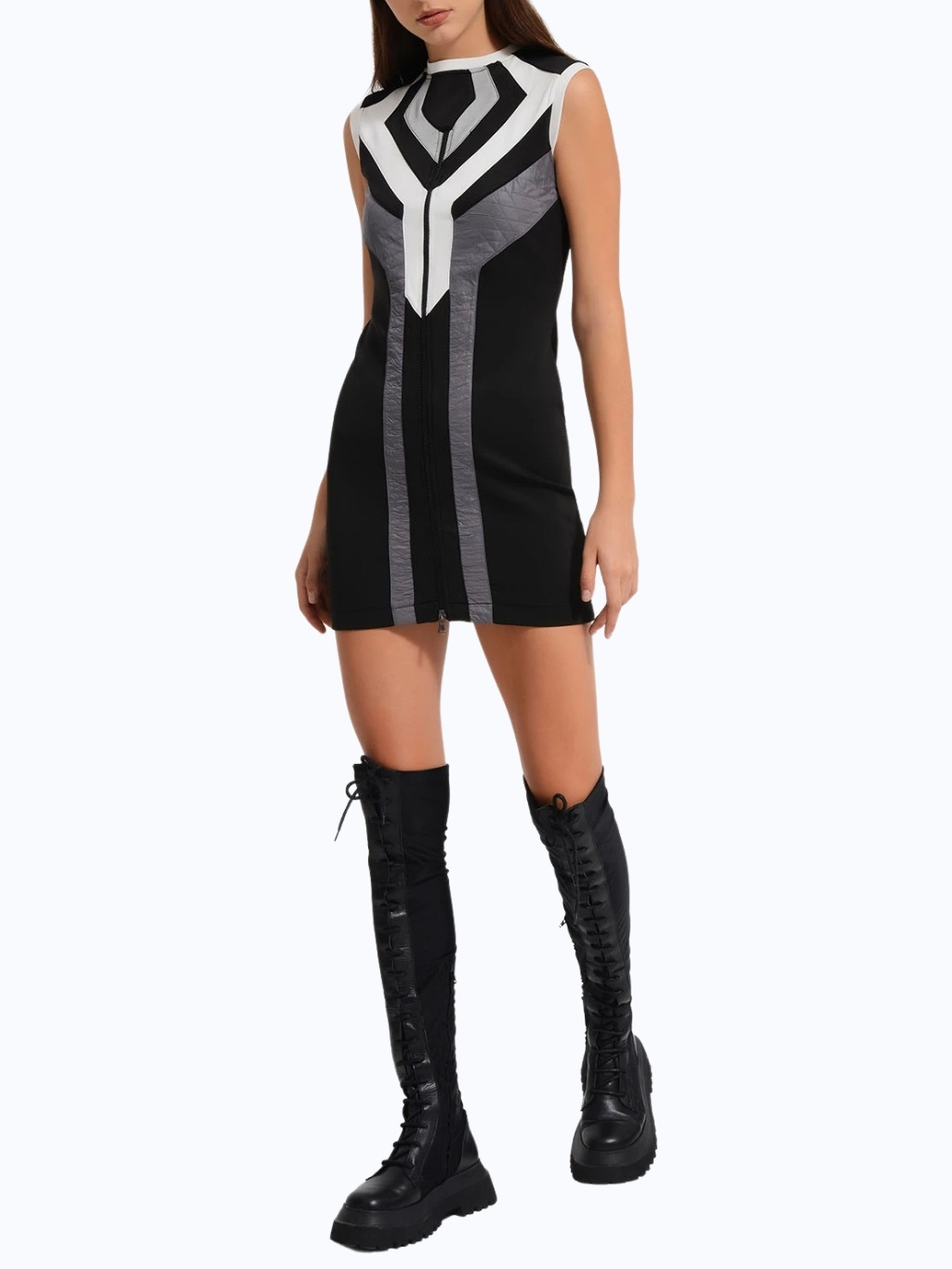 #VDR Siyah - dámske šaty Materiál: 95% polyester, 5% elastan Farba: čierna, biela, sivá Strih: puzdrový Vzor: so vzorom Rukávy: krátke rukávy Zapínanie: na zips Príležitosť: voľný čas Dĺžka: krátke Model: VW21-8255