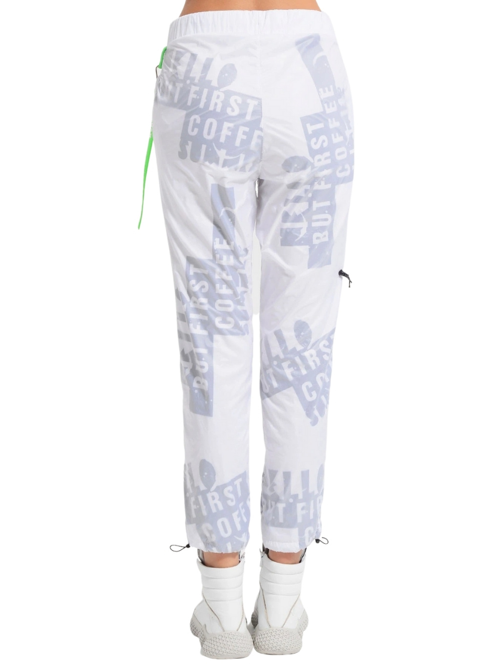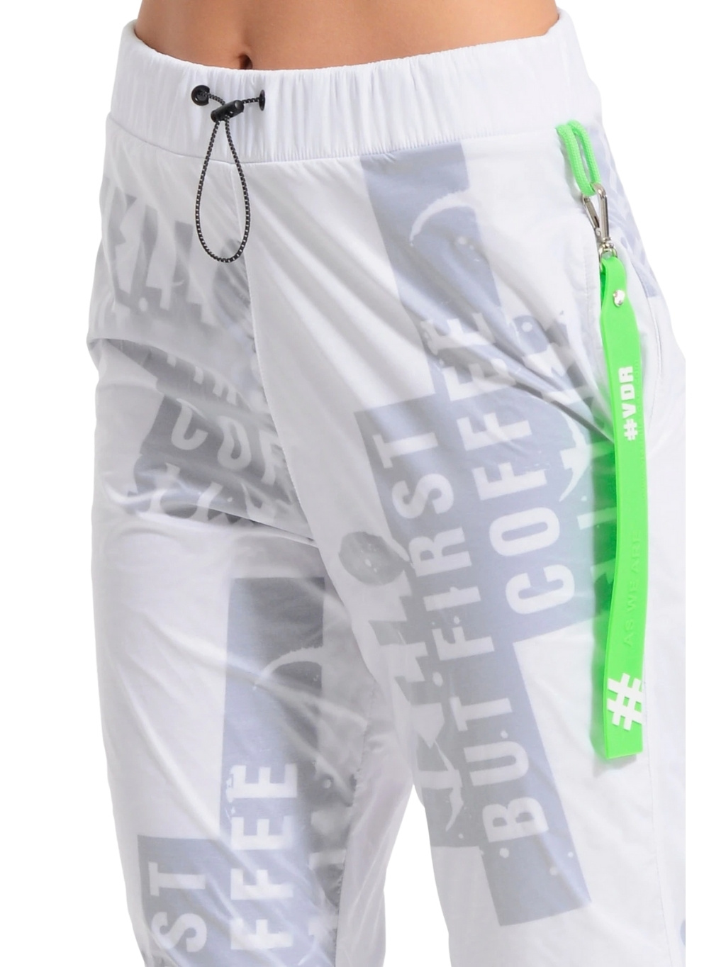 #VDR Beyaz - dámske tepláky Materiál: 100% polyester Farba: biela, sivá Strih: regular fit Zapínanie: elastický pás Vzor: so vzorom Detail: logo značky Model: 8172