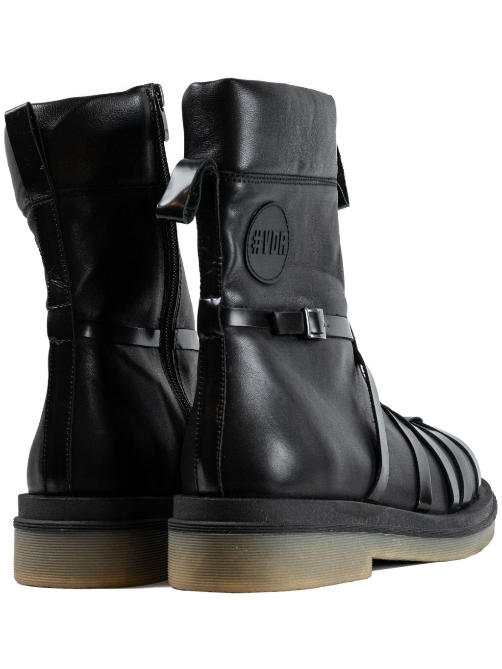 #VDR Gladiator – dámske členkové čižmy Zvršok: koža, polyester Podšívka: koža, polyester Stielka: textil Podrážka: syntetika Zapínanie: na zips Farba: čierna Model: Gladiator