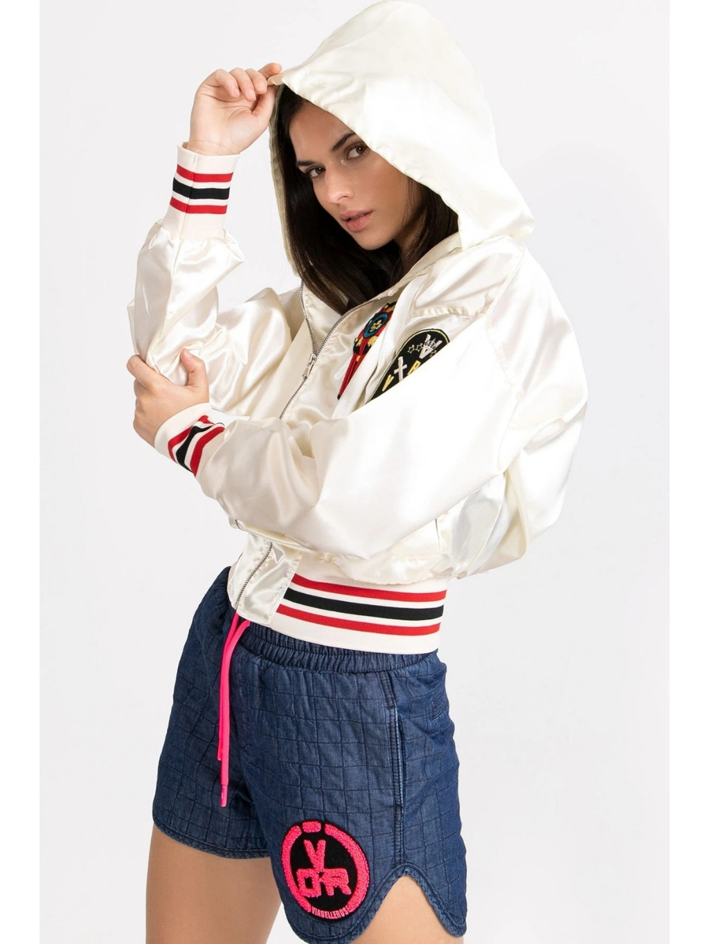 #VDR Panna - dámska bombera Materiál: 100% polyester Typ: s kapucňou Vzor: so vzorom Zapínanie: na zips Farba: béžová Model: 9064